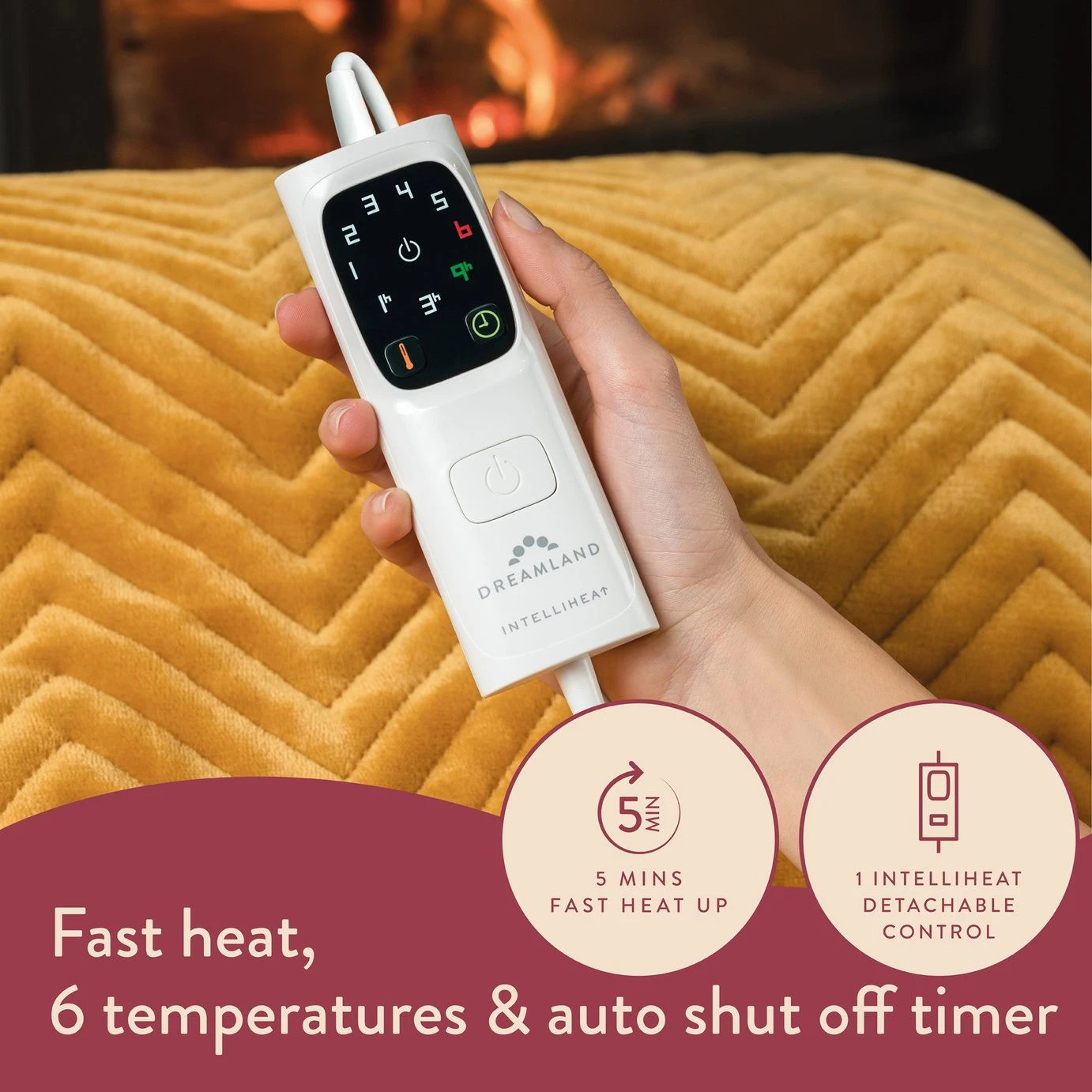 Intelliheat, always the right warmth. Intelligent software and a 5-layer ultra-thin heating sensor wire built in to our blankets to detect its temperature 25 times per second, automatically regulating warmth safely.