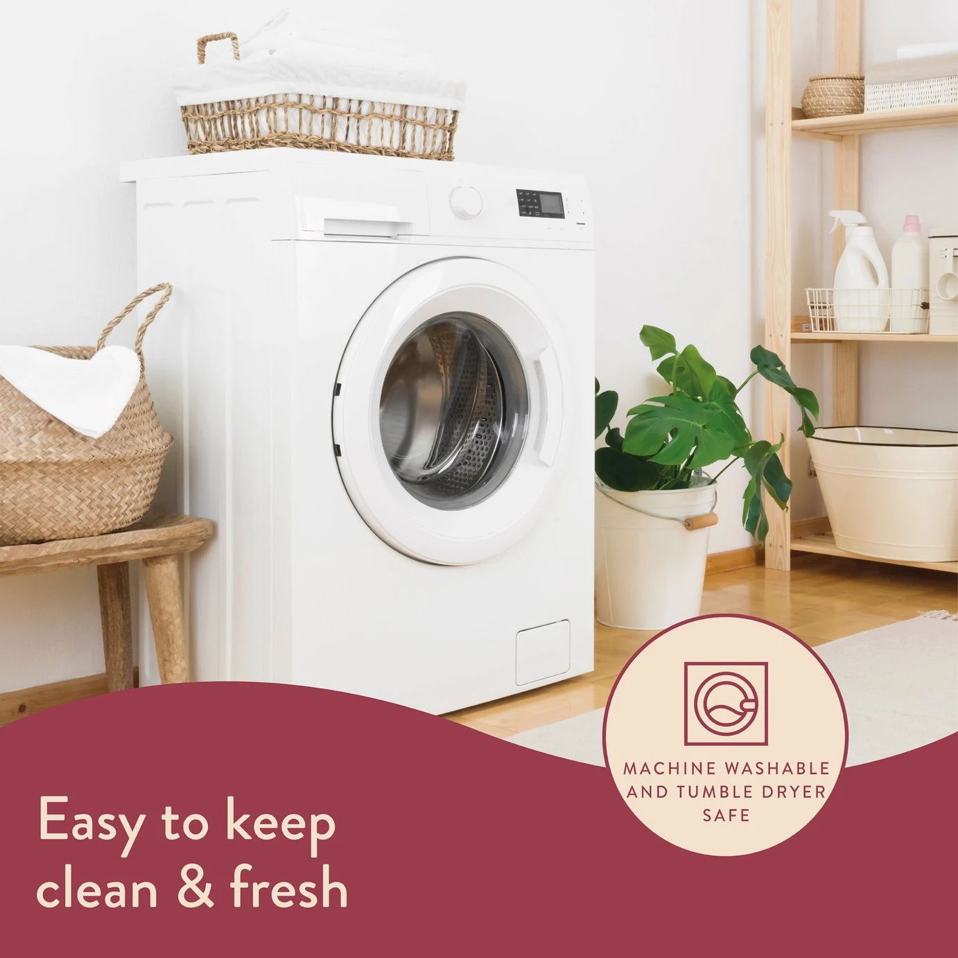 - Machine washable and suitable for tumble drying.