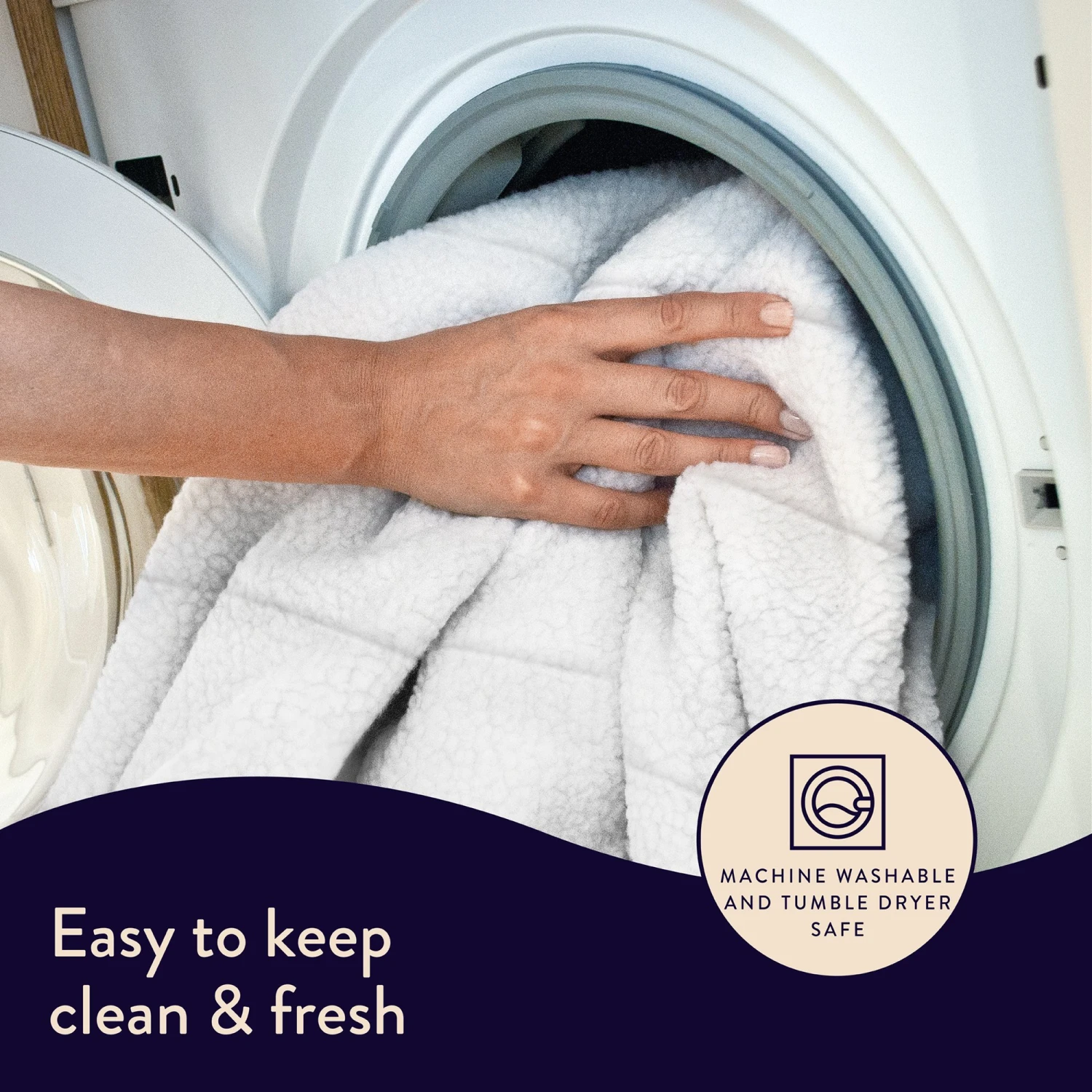 Create a sleep sanctuary with our sumptuous Scandi Sherpa mattress warmer. When the temperature drops, the teddy-bear fleeciness will have you toasty in minutes, but the clever reversible design ensures you’ll stay cool in warmer months. It’s quick to fit – thanks to elasticated corner straps – and even easier to care for. King size with 2 controls, 5 minute fast heat up, 6 temperature settings and auto shut off timer. Machine washable and tumble dryer safe; simply detach the digital control. Energy saving, costing from only 1p to run.