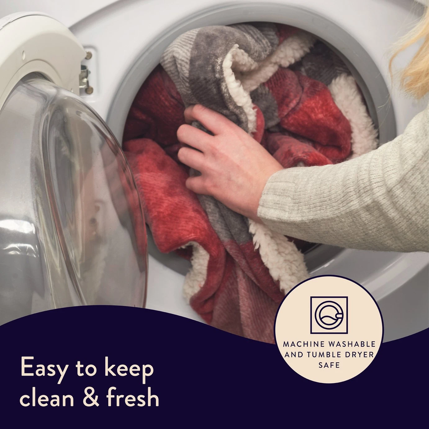 - Machine washable and suitable for tumble drying.