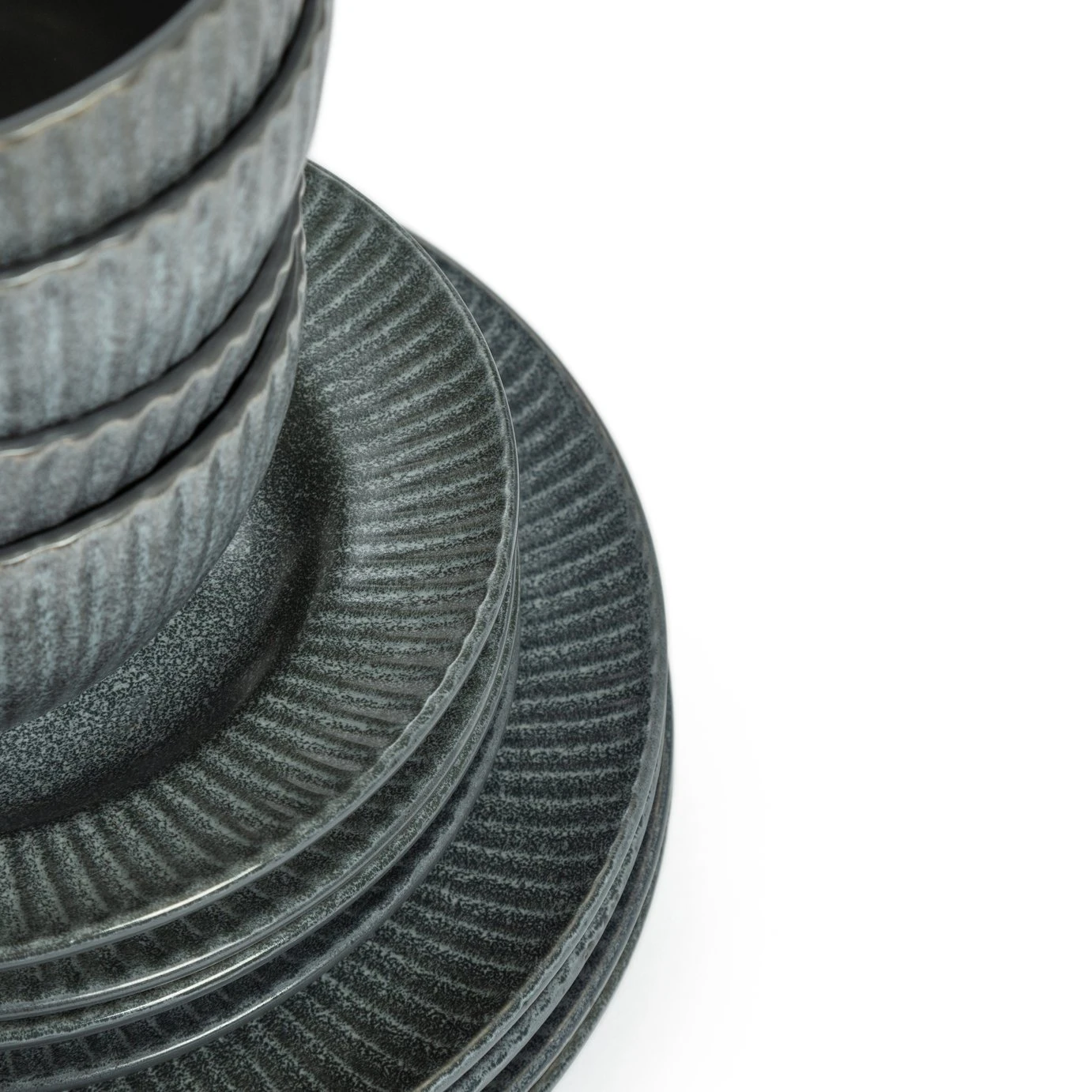 Elevate your hosting game with the 12-piece Felicity dinner set. Featuring an attractive, ridged design that is tactile to the touch, Felicity is as comfortable for day-to-day use as it is for special occasions. Crafted from durable stoneware, it’s both dishwasher and microwave safe for ease of use. Set the tone for the table and serve your guests in style.