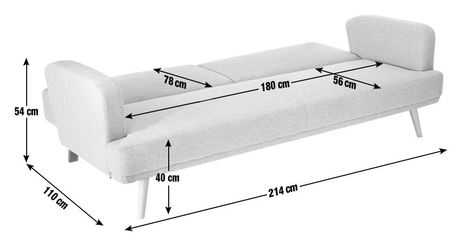- Sofa size H82, W214, D90cm (Depth as bed 110cm).