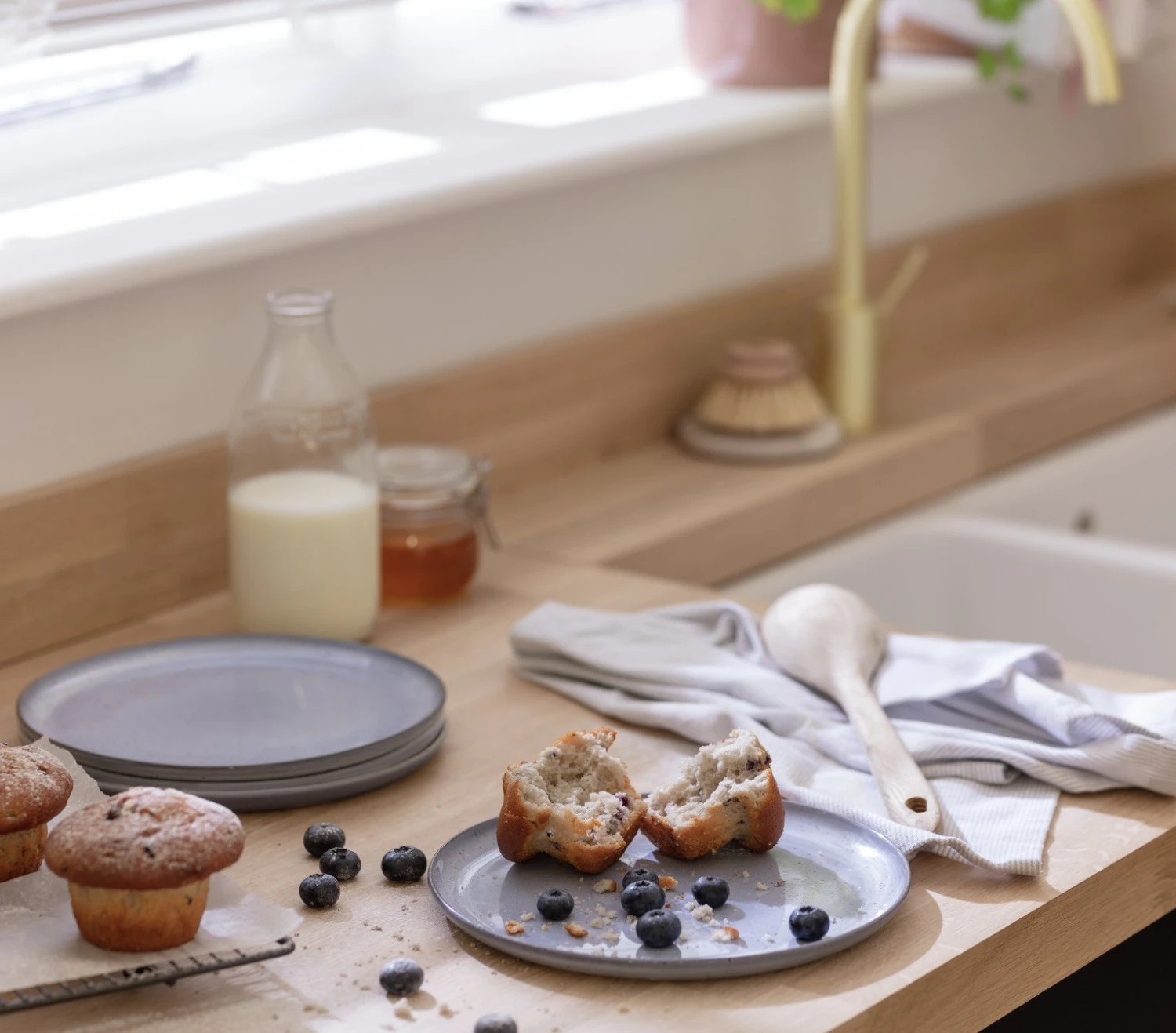 Refreshing in blue. These 4 speckled stoneware side plates have a beautiful reactive glaze. It’s what makes each piece subtly unique. Designed for everyday meals or smart enough for bread and butter at dinner parties. Set these pretty plates on a wood table for a natural country look. Or place on a white table cloth for a fresh as a sea breeze feel. Let’s eat!