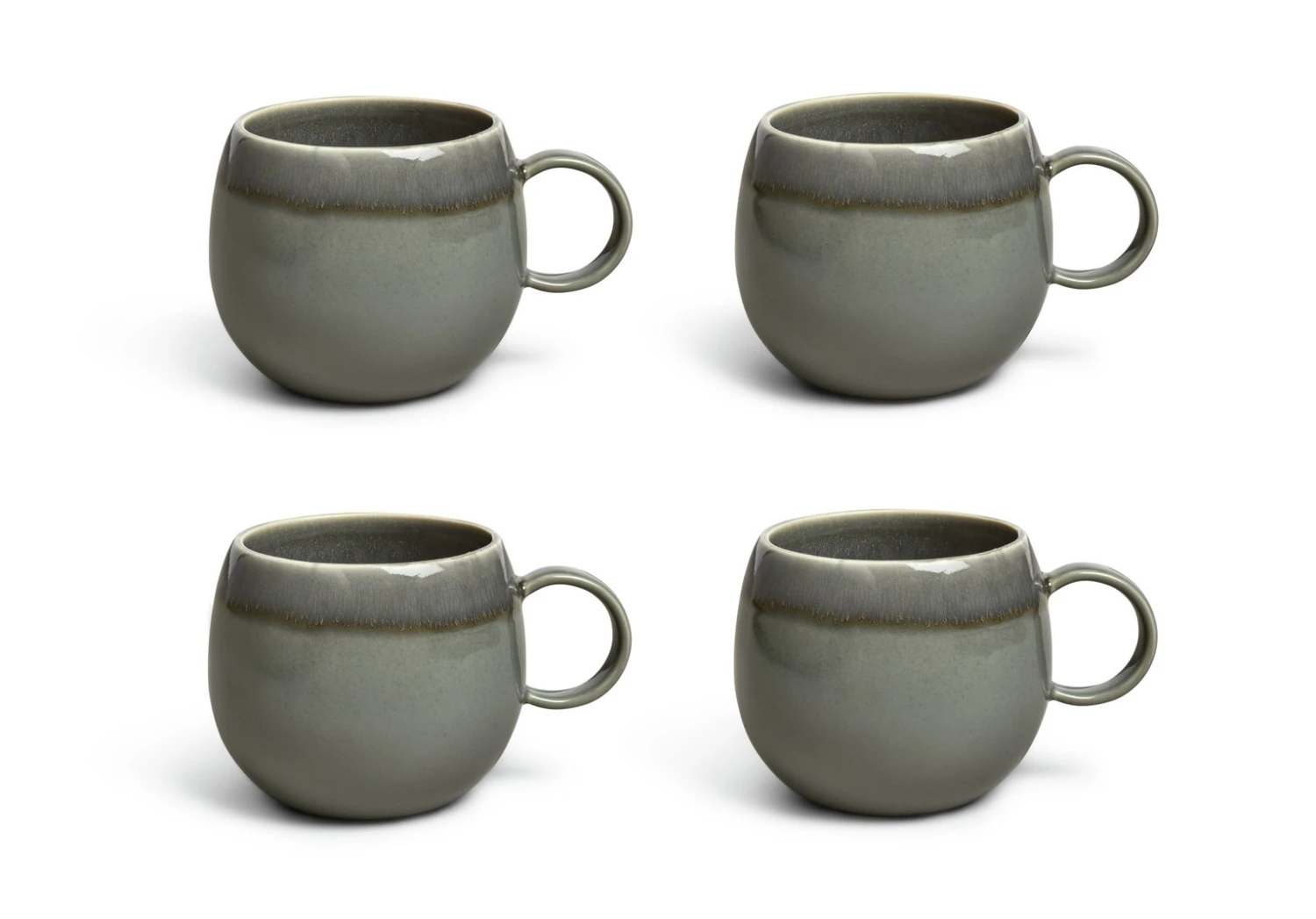 Our set of 4 Evora stoneware mugs are full of character. The glossy reactive finish means each piece subtly unique. In a gorgeous green, they sit beautifully in modern or country kitchens. The curvaceous and tactile design feels so comfortable as you cradle your morning coffee or tea. Just pop in the microwave to heat up and stack in the dishwasher when you’re done. Sip in style. Love this organic, one-of-a-kind look? Match with more in our Evora collection.