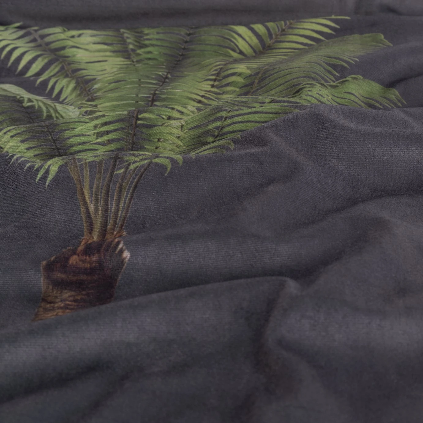 A palm fringed throw in the softest, lightweight velvet. Don’t you just love the aesthetic? Deep greys and blacks printed with gorgeous, lush green leaves. Lined in 100% cotton, this tropical treat is also kind to skin. Exotic, stunning and totally luxe.