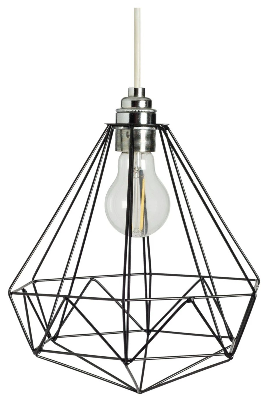 Geometric design makes a bold entrance with this strking pendant shade. With its black steel finish it celebrates the brilliance of feature bulbs, exposing the bulb for a clean understated look. Designed to cast bright light across your room, the Kanso wire pendant shade is a must for any modern on-trend space. See the rest of the Kanso collection to complete the look.