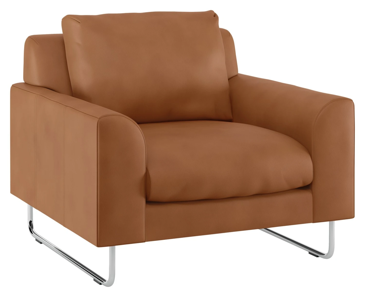 With large, squashy cushions and curved arms that soften its angular lines, the Lyle tan premium leather armchair is a relaxed, contemporary design. Perched on chromed ski legs, the inviting armchair’s narrow frame allows a generous seat for its size; its cushions have a neat tucked detail on their corners and are removable for regular plumping. The armchair is hand made to order and is part of the Lyle range, available in various sizes with fabric or leather upholstery in a choice of colours.