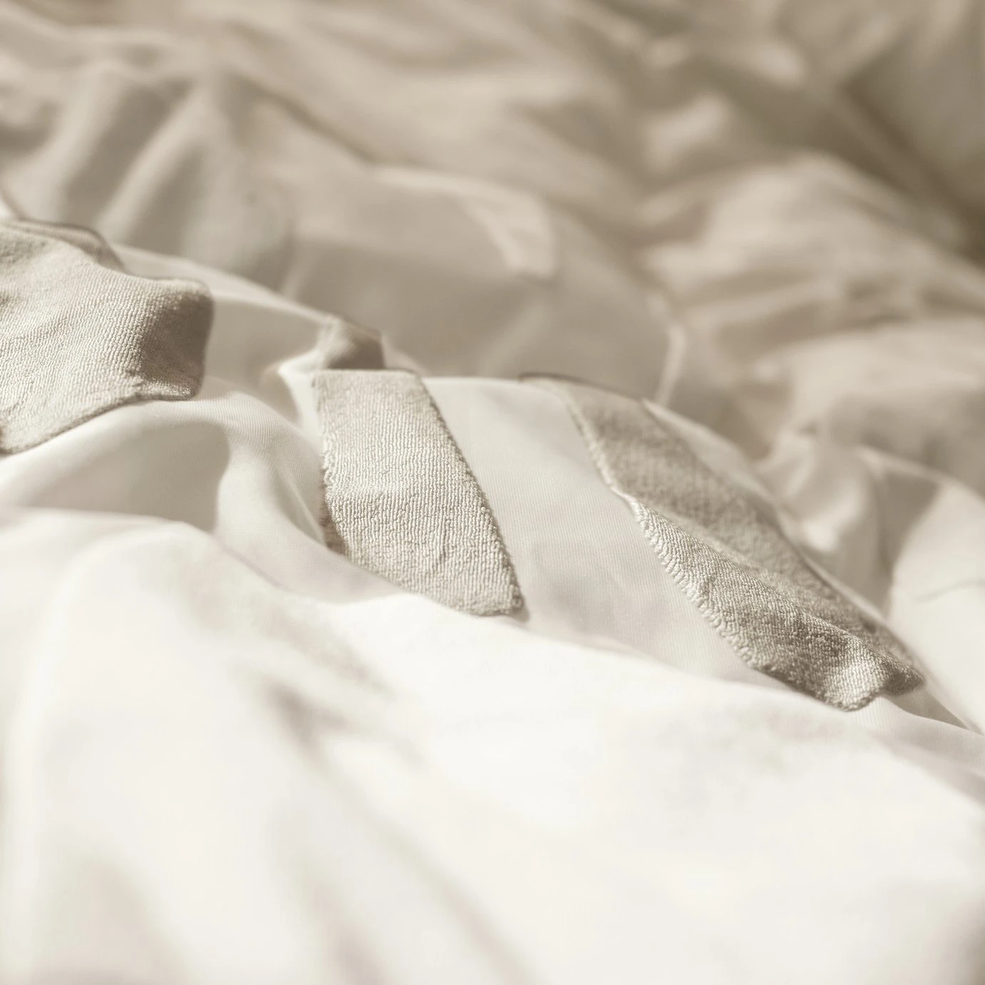 Shape up your sleep space. Our jacquard single bedding set is a medley of calm, contemporary and quirky. With its natural palette and modern geo shapes, it’s a unique design with lots of personality. The distinctive velvet panels have a rich luxurious texture. Very snuggly cosy. Feeling drowsy yet?
