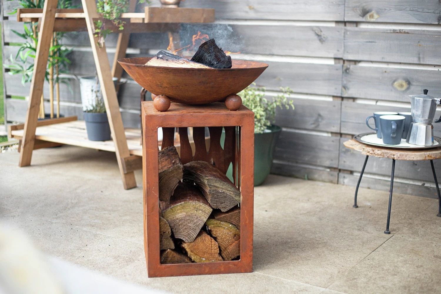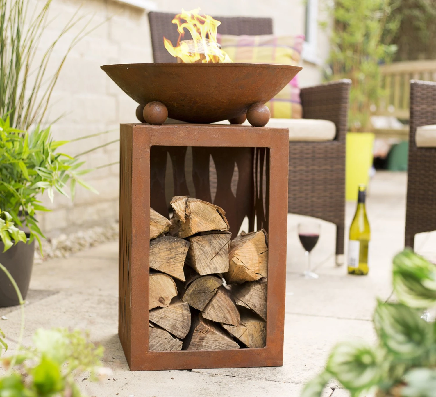This Firepit will be a terrific addition to any outside space that will benefit from a thoroughly modern garden feature. Manufactured in high quality steel, this firepit is practical as well as beautiful with a delightfully decorated compartment underneath where logs can be stored. An oxidised surface texture gives the impression of age but there is nothing out of date about this firepit, this is reflected by the superb design values that have been included in a remarkably attractive creation.