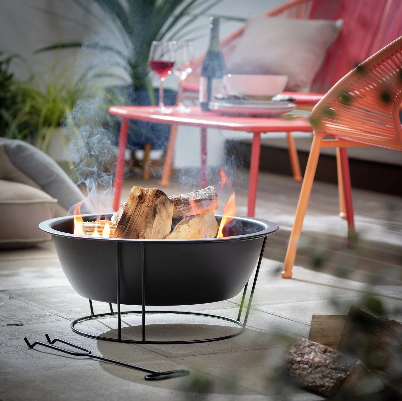 This durable black steel firebowl is easily portable, ideal if you want to move it around your garden for different events. The firepit comes with a black metal stand and black metal tool, making it easy to assemble and hassle free. With a black, high temperature paint finish, it is the perfect addition to your garden setting.