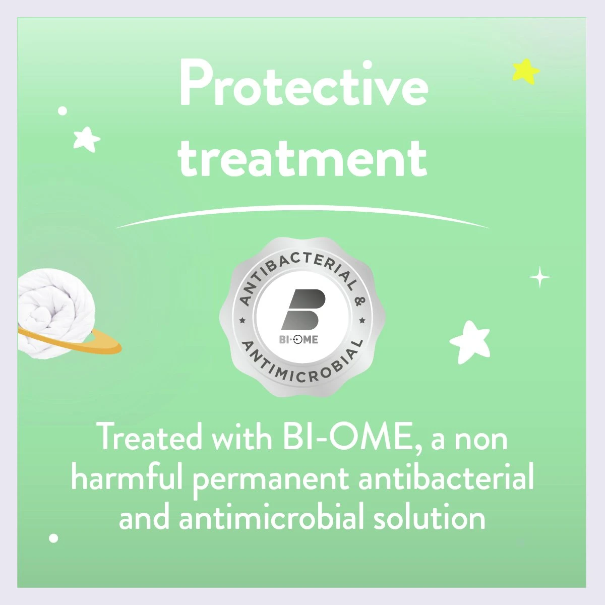The Slumberdown Little Slumber Anti Bacterial Cotton pillow has been designed for children. It is carefully formulated with a permanent, antibacterial, antimicrobial, non-harmful odour control treatment – BI-OME which protects textiles from the build-up of dustmites and odour causing bacteria. The smaller 60cm x 40cm soft support pillow offers a reduced fill to provide the right support for your child’s head and neck. Independently tested by experts, so your little ones can enjoy a comfier, fresher and healthier sleep space.