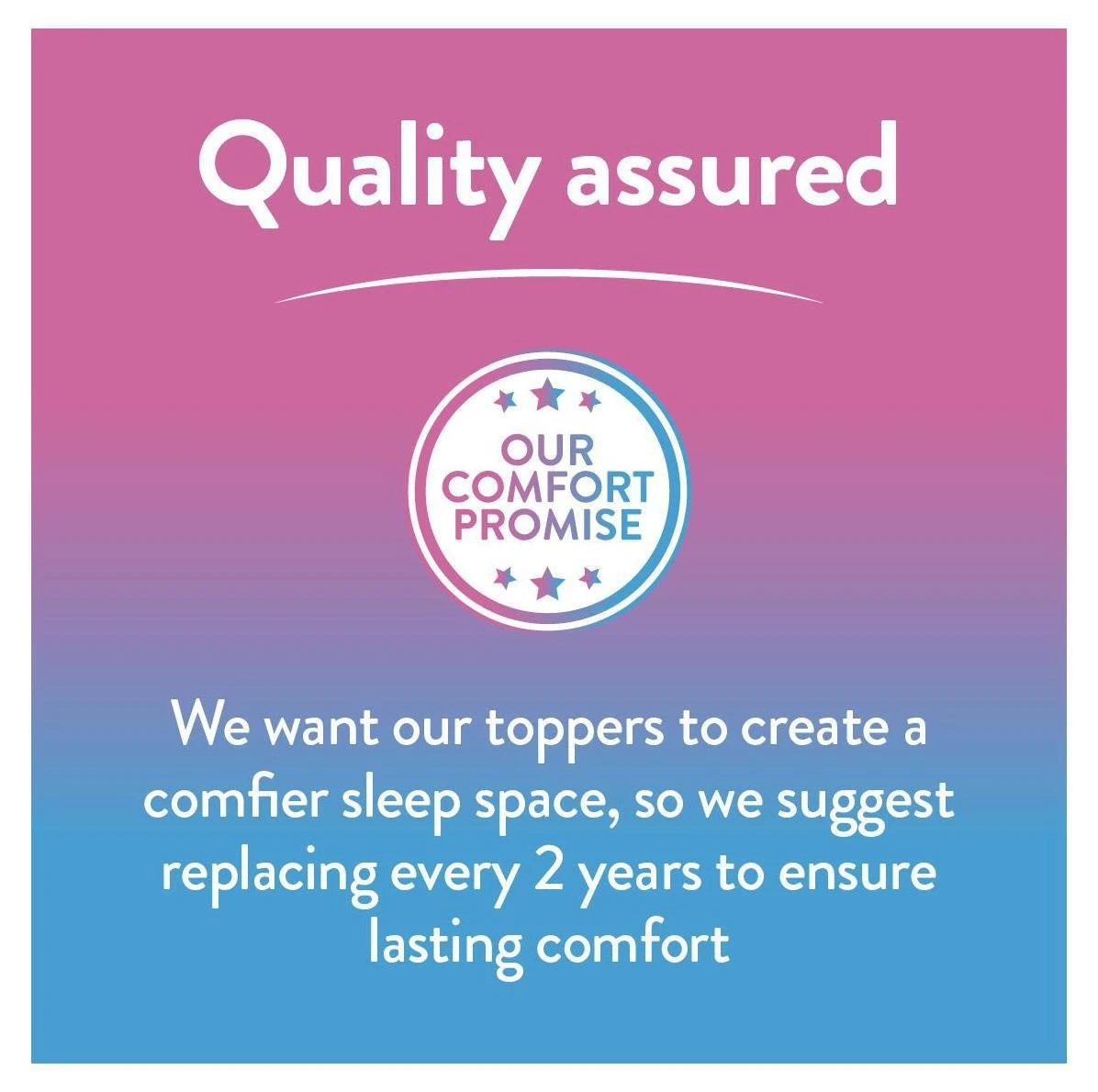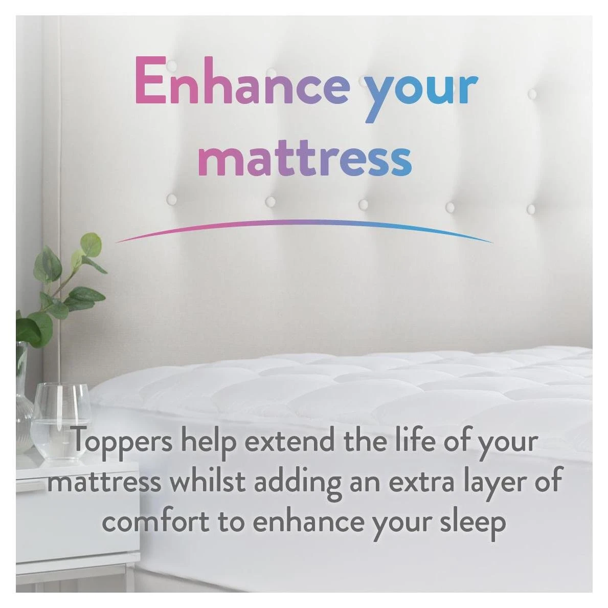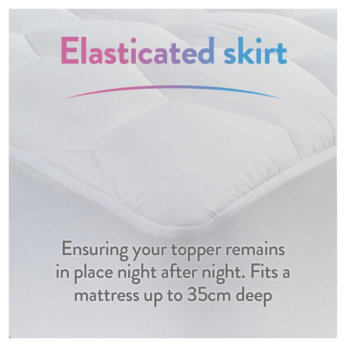At Slumberdown we believe everybody deserves a better night’s sleep. The Slumberdown Climate Comfort Topper has a breathable filling which wicks away moisture resulting in a cool, dry sleep space. The soft touch cover ensures your mattress is protected from sweat and stains. This quilted topper is 2.5cm deep and fits to your bed with a secure skirt, suitable for mattresses up to a depth of 35cm. What’s more our products are Easy Care which means they can be machine washed to ensure a clean and fresh sleep space.