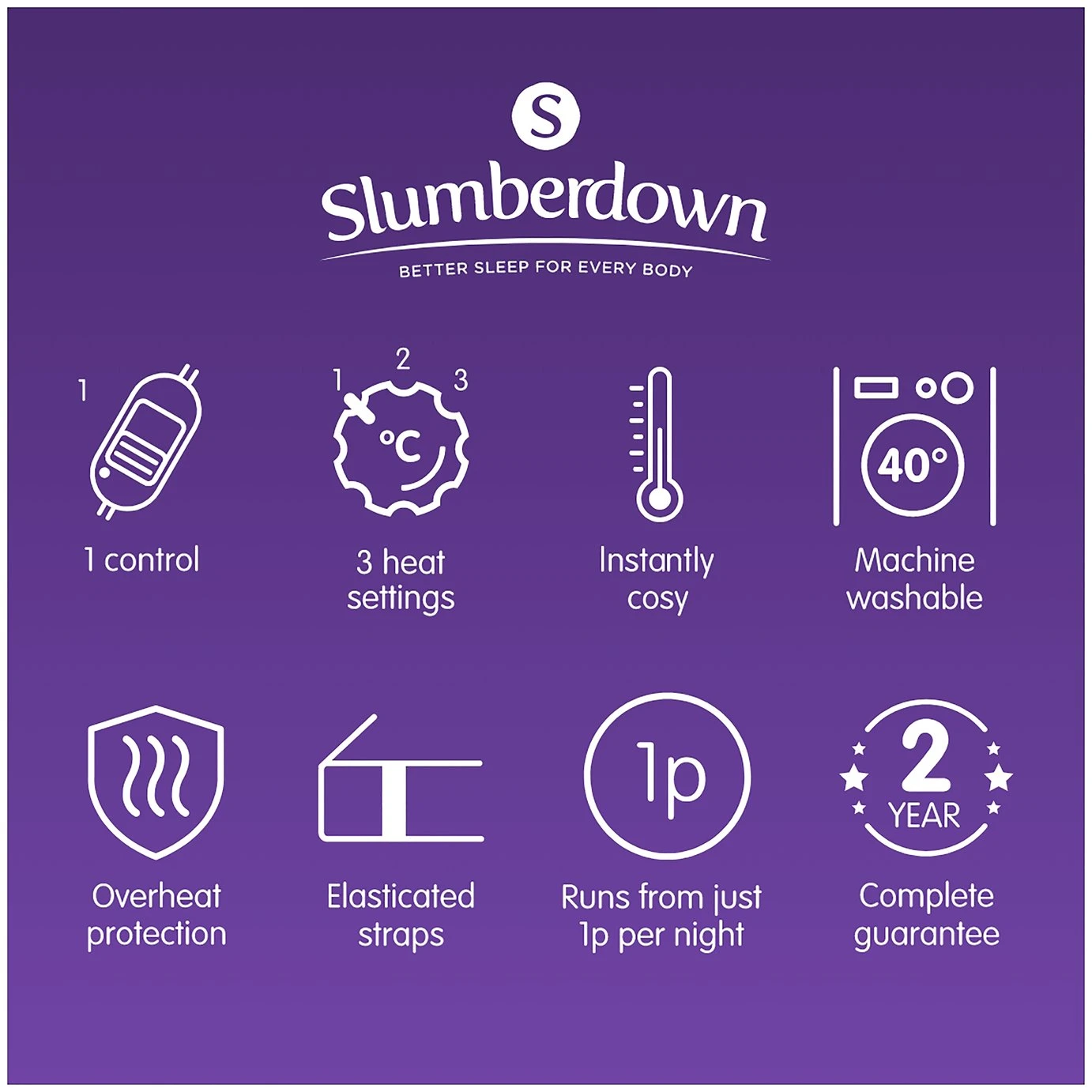 Keep your toes toasty with the Slumberdown Essentials electric blanket. It easily attaches with corner straps to a small double bed, and with 3 settings you can achieve the perfect temp for your cosy cocoon to curl up in. Conveniently, it’s machine washable and has low energy consumption with auto shut off, giving you peace of mind.