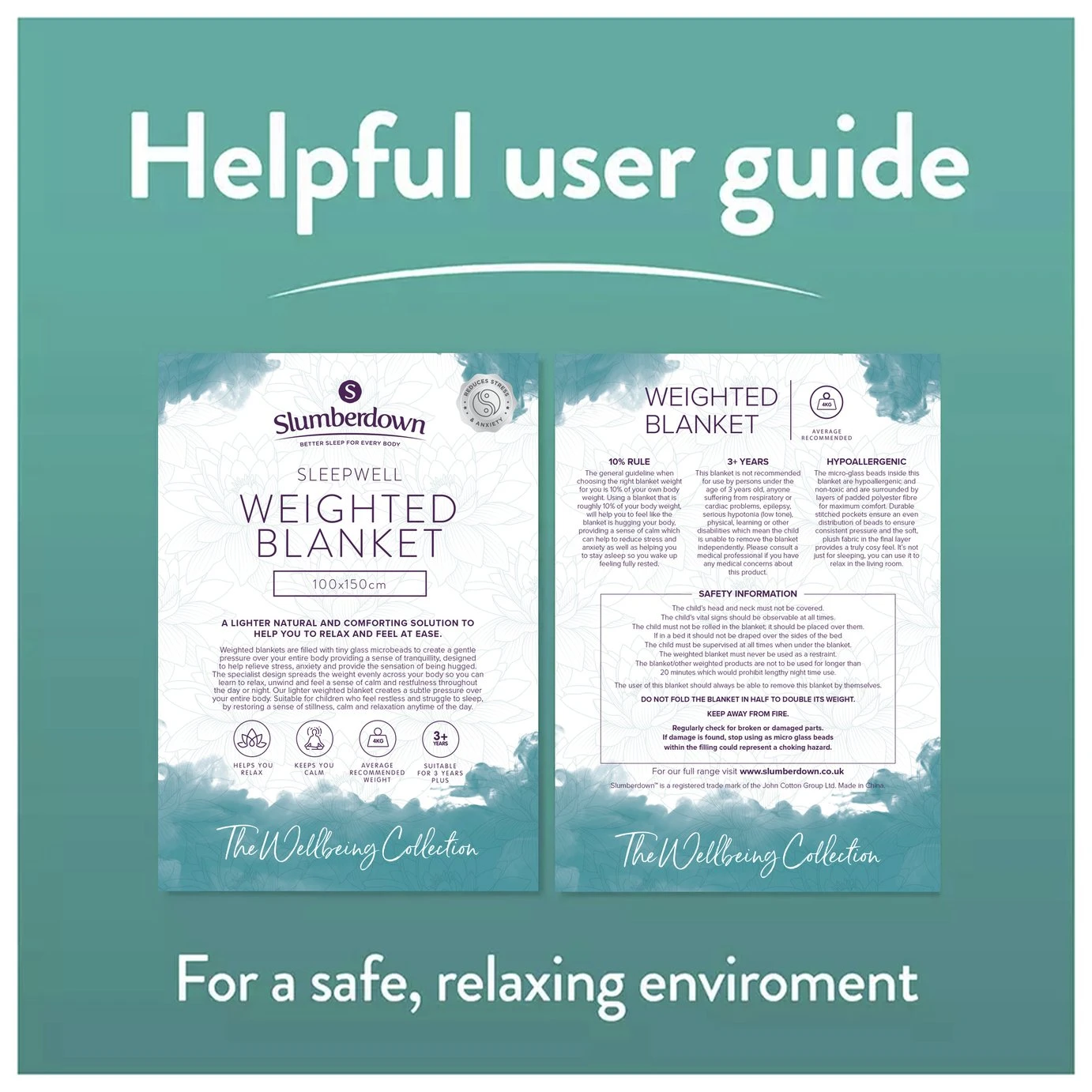 At Slumberdown, we believe everybody deserves a better night’s sleep. The Slumberdown 4kg Weighted Blanket is part of our Wellbeing range and is ideal for anytime of the day or night. Weighted blankets are known to help improve sleep quality and can be used to relive stress and anxiety. The lovely soft grey blanket is filled with glass microbeads creating a gentle pressure over your entire body giving the sensation of being hugged, this allows you to relax, unwind and feel a sense of calm and restfulness.