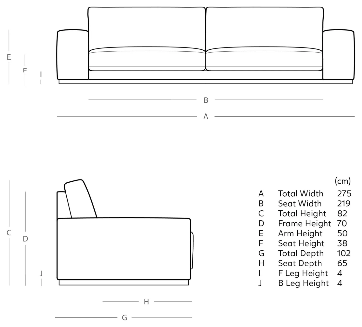 - Width of seating area between arms: 219cm.