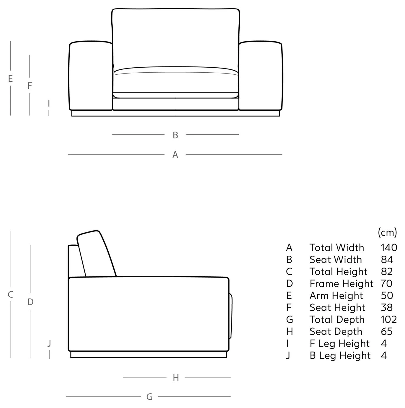 - Width of seating area between arms: 84cm.