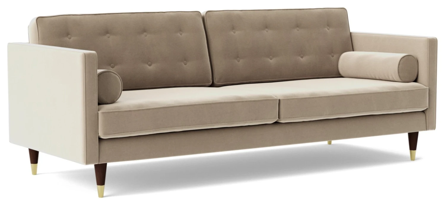 Button-backed, brass-capped and stacked full of character – we like the Porto. We like it a lot. Inspired by the opulent casino lounges of 1950s Las Vegas, the bolster cushions are what define this Mid-Century piece. This sofa’s a winner, baby.